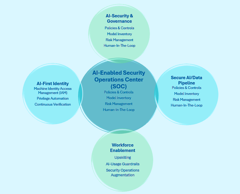 AI‑native security with multi‑layer defenses, high automation, continuous improvement, strong auditability, and minimal unplanned AI‑related incidents.